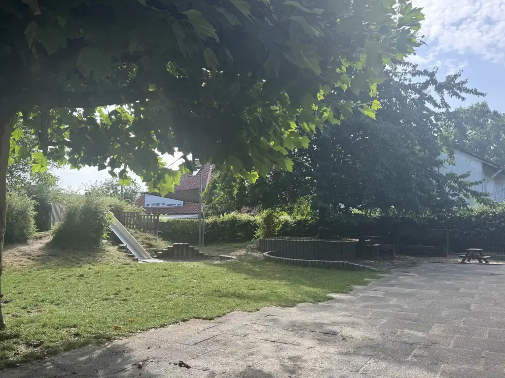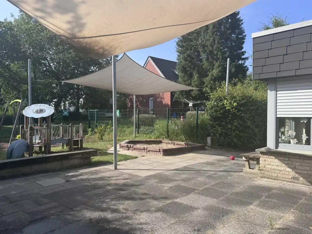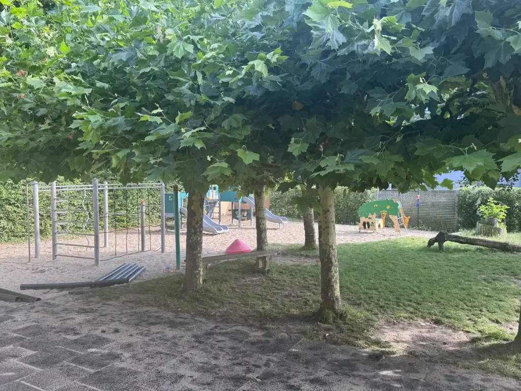 Unser anregungsreiches Außengelände steht den Kindern selbstverständlich jederzeit zur Verfügung. Neben einem großen Spielplatz mit verschiedenen Spiel- und Turngeräten gibt es auch einen abgetrennten, kleineren Garten. Hier können sich auch die Kleinsten – im etwas geschützteren Rahmen – austoben und spielen. Außerdem werden erkundungsreiche Spaziergänge durch den Ort und seine Umgebung gemacht.