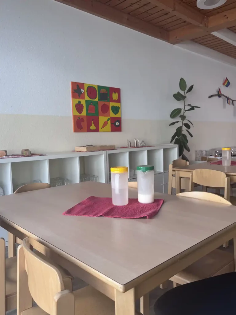 Allen Kindern wird täglich ein gesundes und abwechslungsreiches Frühstücksbuffet im „Bistro“ der KiTa angeboten. Dieses wird von unserer Alltagshelferin vorbereitet und liebevoll begleitet. Die Kinder bekommen hier die Möglichkeit, eigenständig ihr Frühstück auszusuchen, sich auszuprobieren und gemütlich mit anderen Kindern – in unterschiedlichen Gruppenkonstellationen – zu frühstücken.
