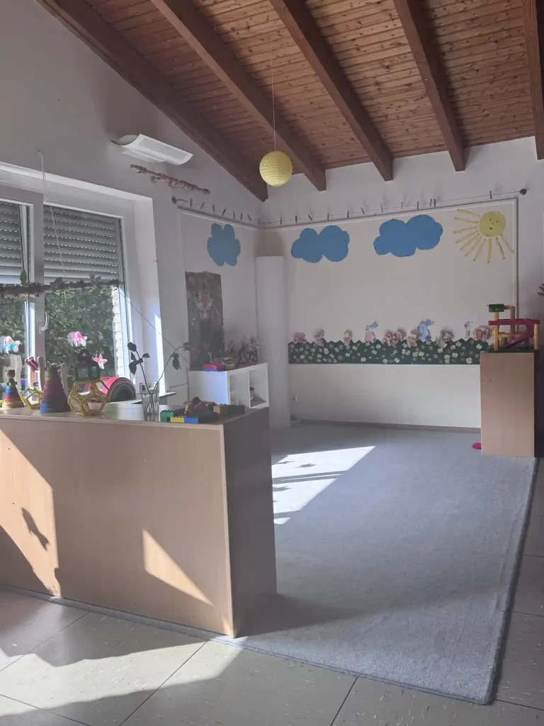 In unserer Tageseinrichtung gibt es zwei Gruppen, in denen aktuell 37 Betreuungsplätze für Kinder im Alter von zwei bis 6 Jahre zur Verfügung stehen. Ab Sommer kommt eine weitere Gruppe mit 10 Kinder im Alter von 0,8 bis zwei Jahren hinzu. Es stehen dann 42 betreuungsplätze zur Verfügung.
